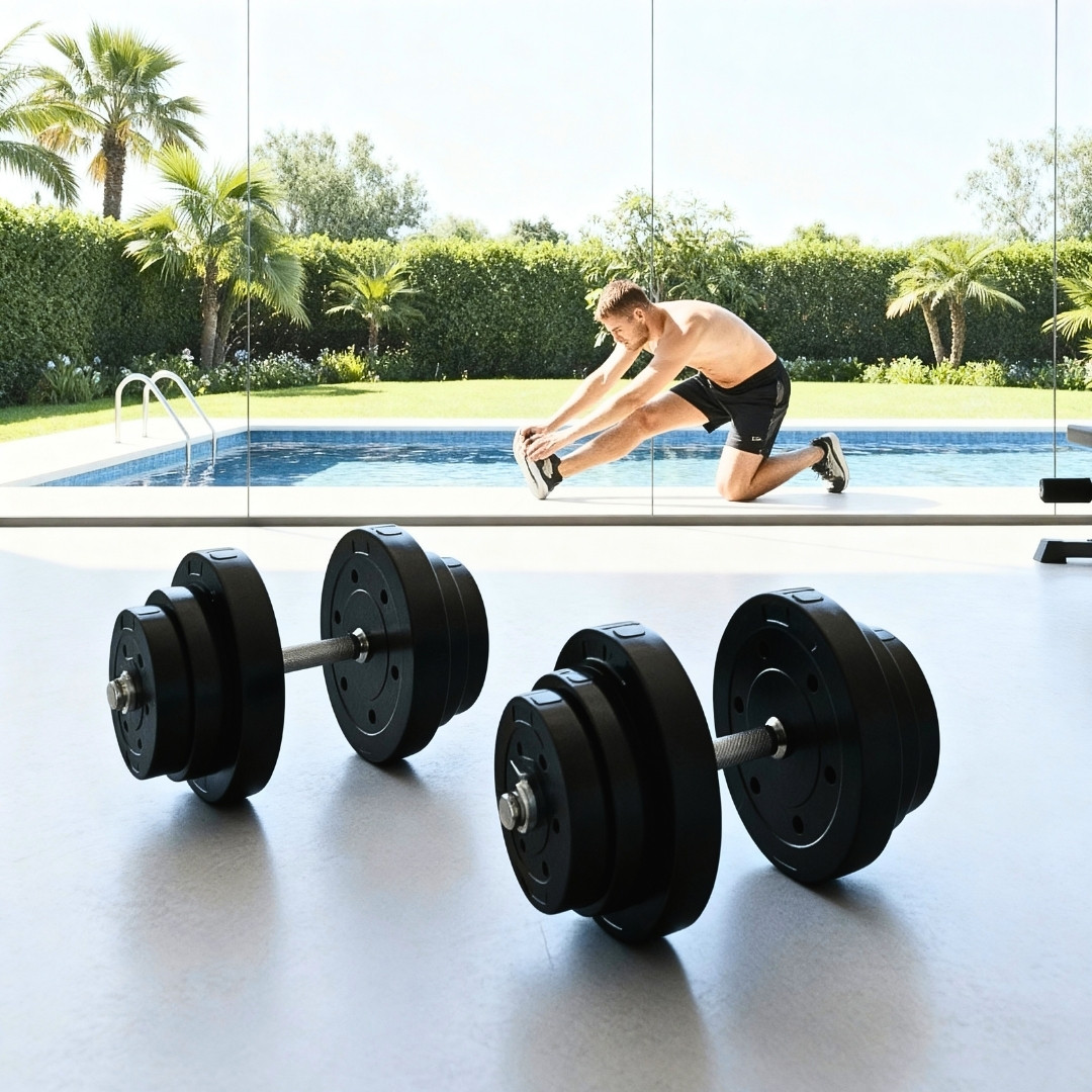 Équipez-vous comme un pro avec nos kits d’haltères réglables, pensés pour vous offrir polyvalence, gain de place et efficacité dans vos entraînements. ✔ Entraînement complet : idéal pour travailler tous les groupes musculaires – bras, épaules, pectoraux, dos et jambes. ✔ Poids ajustables : composez votre charge à volonté grâce aux disques inclus, et progressez à votre rythme. ✔ Barres robustes : conçues pour une prise en main confortable et sécurisée, compatibles avec les disques standards. ✔ Choix adapté à vos objectifs : disponibles en 20 kg, 30 kg et 40 kg, selon votre niveau et votre intensité d’entraînement. ✔ Pratique & compact : un seul kit pour remplacer plusieurs paires d’haltères, parfait pour l’entraînement à domicile.