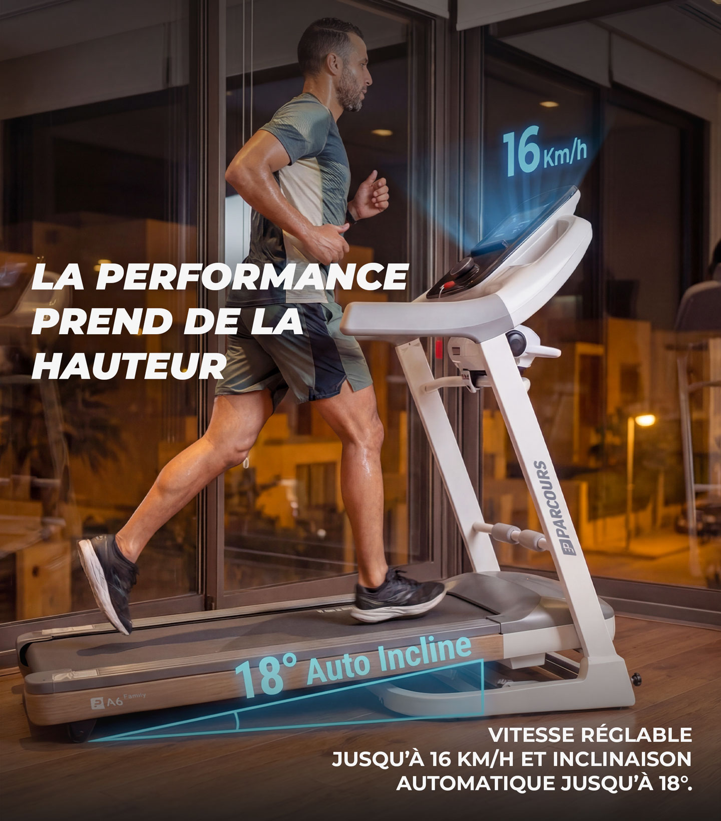 Le A6 Family s'adapte aux différents rythmes et objectifs de chaque membre. De la marche douce à la course intense, il offre une expérience sur mesure et sécurisée, faisant de l'exercice un moment de plaisir partagé pour tous